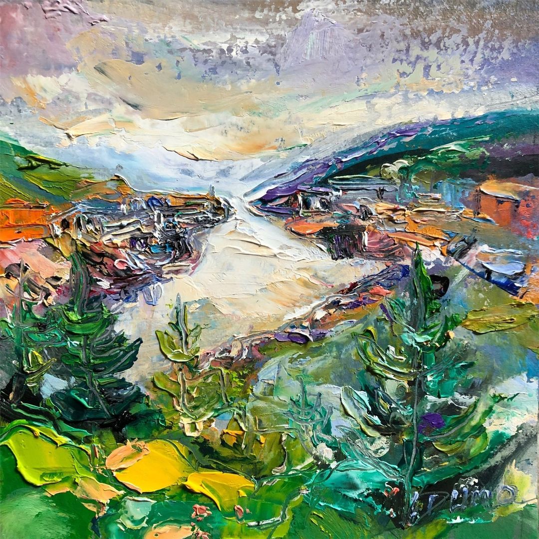 Tạo nên một bức tranh phong cảnh độc đáo bằng cách thêm hiệu ứng chất liệu thú vị. Hãy xem các lớp màu, đường nét, và nét cọ 3D trong tác phẩm trên – những mảng sơn như nhảy ra khỏi bức tranh! Bạn có thể sử dụng dao vẽ, dụng cụ tạo kết cấu, hoặc thậm chí các vật dụng gia đình để định hình và tạo đường nét cho tranh của mình.