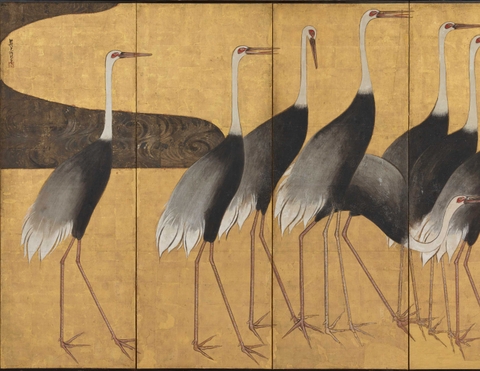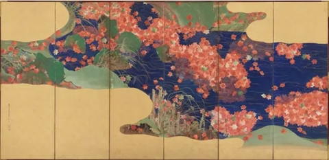 Một bức bình phong của nghệ sĩ Rinpa nổi tiếng nhất, Ogata Korin (1658-1716), cũng là một phần của triển lãm. Có lẽ nổi tiếng nhất với những bức bình phong hoa diên vĩ và hoa mận đỏ và trắng, nghệ sĩ này đã cực kỳ thành công trong suốt cuộc đời và làm việc trên nhiều lĩnh vực, bao gồm tranh cuộn treo, tranh quạt, đồ sơn mài, hàng dệt may và đồ gốm.
