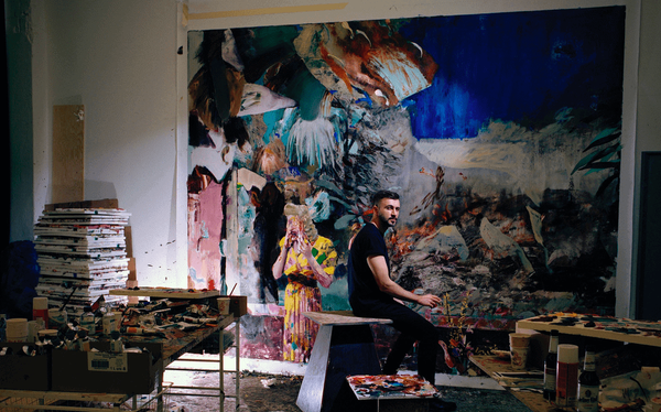 Portrait of Adrian Ghenie working in his Berlin studio (2014). Photo: Oliver Mark.