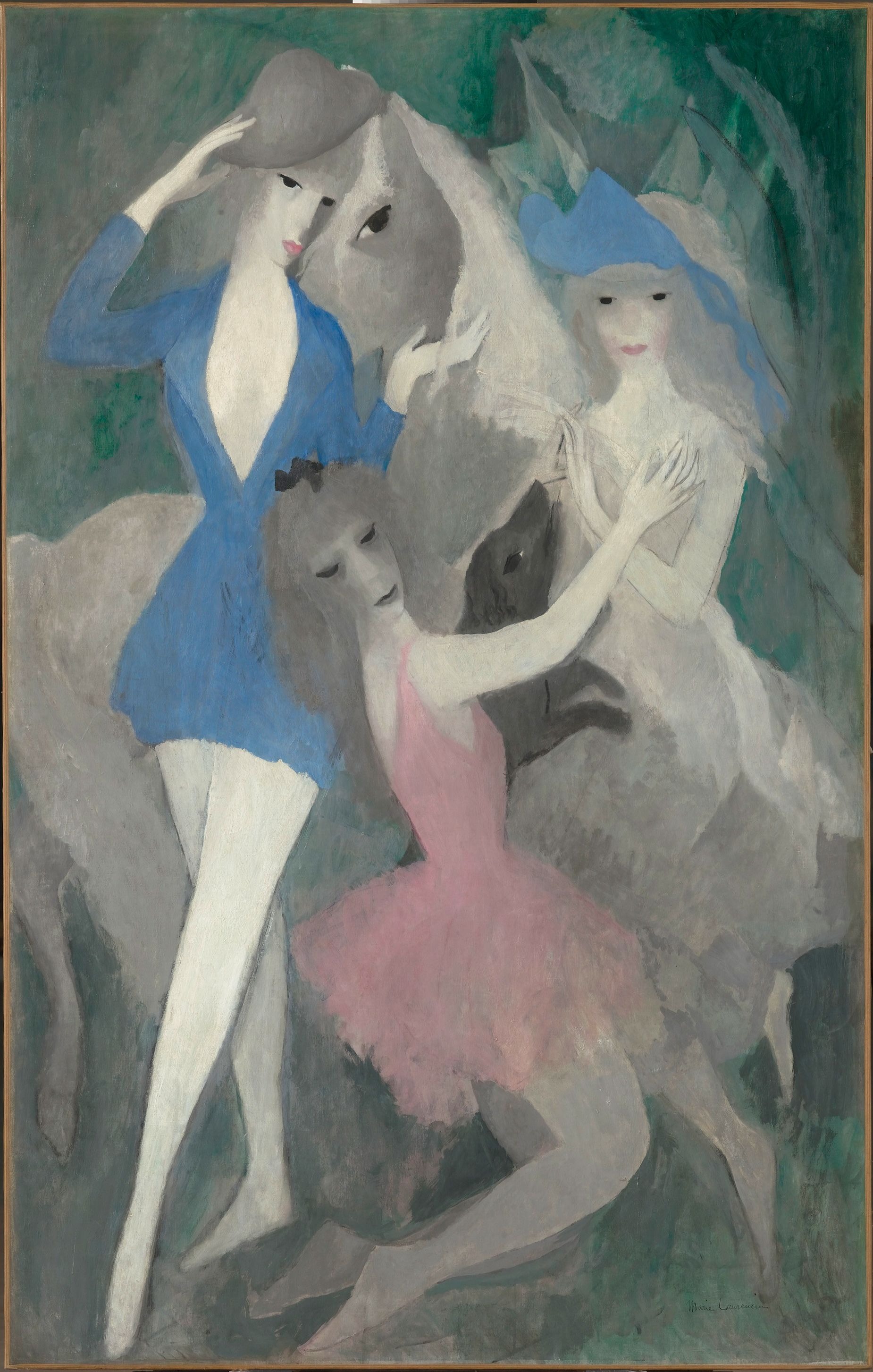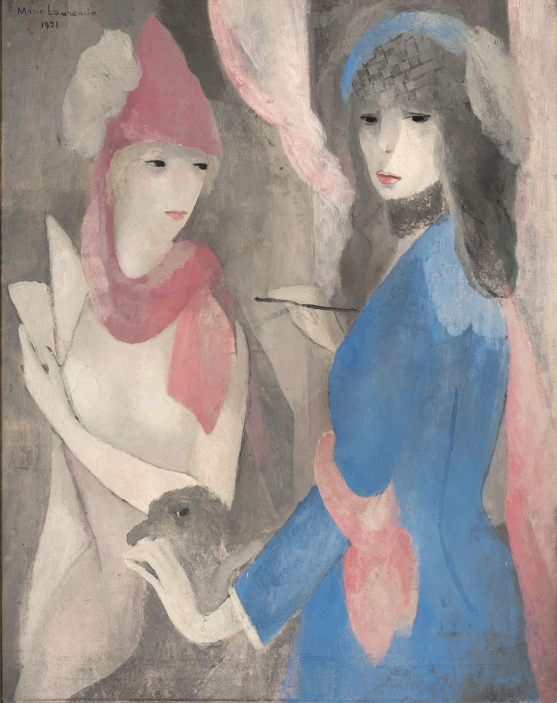 Marie Laurencin – nữ họa sĩ Pháp với lối vẽ mơ màng, dịu dàng – đã mang đến những bức tranh sống hai cuộc đời trong suốt thế kỷ qua. Với gam màu hồng và xám nhẹ nhàng, những hình thể nữ giới mong manh của Laurencin từng bị nhìn nhận là nhẹ dạ và một chiều, dù bà rất thành công trong thời gian hoạt động. Tuy nhiên, việc loại bỏ hoàn toàn hình ảnh đàn ông trong tranh và sự hiện diện của các biểu tượng ẩn dụ đã cho thấy thế giới riêng đầy phức tạp của nữ họa sĩ – một thế giới đồng tính nữ được ngụy trang bằng sự nữ tính quá mức.