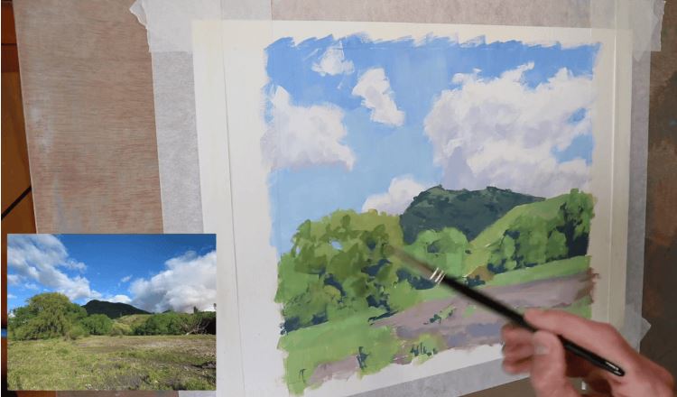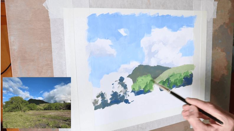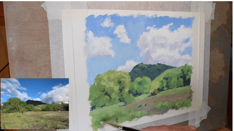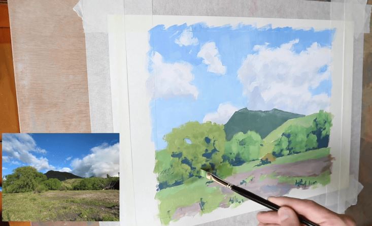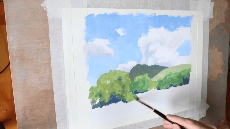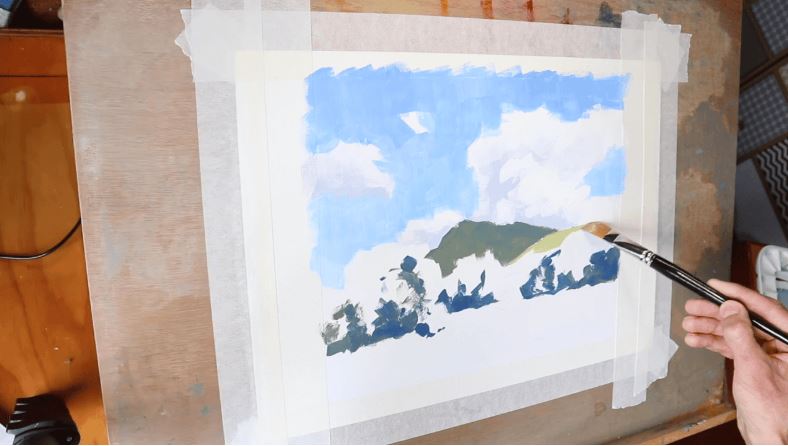 Hãy nhớ rằng, độ mờ đục của bột màu cho phép điều chỉnh và thêm chi tiết ở bất kỳ giai đoạn nào của quá trình vẽ. Đừng ngại xem lại các khu vực và tinh chỉnh chúng khi cảnh quan phát triển.