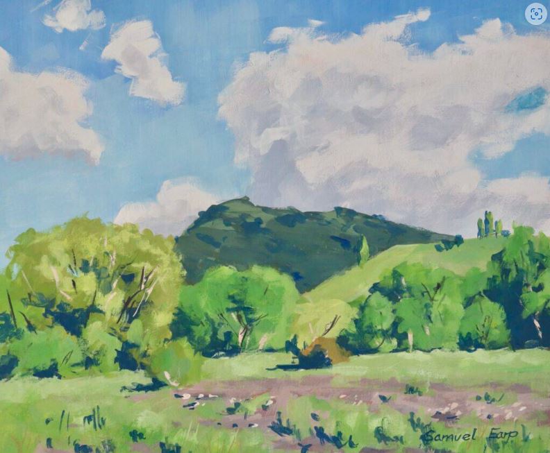 Vẽ đồi và cây ở xa Những ngọn đồi ở phía sau đóng vai trò quan trọng trong việc tạo chiều sâu cho cảnh quan. Bảng màu tương tự như bóng đổ của cây được sử dụng, nhưng có một số thay đổi nhỏ: