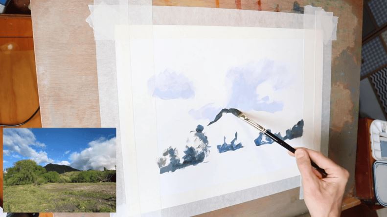 Vẽ bóng mây Để tạo bóng mờ do mây tạo ra, sử dụng bảng màu pha trộn cẩn thận:
