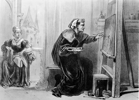 ( Illustration of Jan Van Eyck at work, c. 1754. )