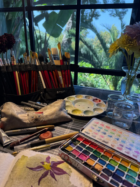 Các bức tranh màu nước và cọ vẽ của Rozsa. (Hình ảnh: Tư liệu: Johnny Rozsa).
