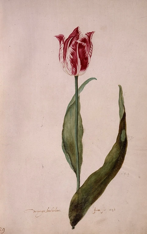 Judith Leyster, Trang 29 trong Sách Hoa Tulip, 1643, màu chì và màu nước trên giấy, 15 x 10 3/4 inch.