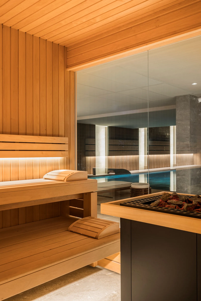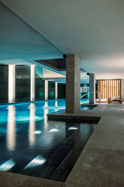 Khu health club dưới tầng hầm khác biệt với phòng gym thông thường: trang thiết bị Technogym, juice bar, tường leo núi và năm studio tổ chức hơn 100 lớp học mỗi tuần. Spa có bể bơi bán Olympic, hammam, sauna và trị liệu với sản phẩm Typology và Ho Karan. Khách bên ngoài có thể đăng ký hội viên hoặc vé ngày, nhưng để tận hưởng sự tĩnh lặng tuyệt đối, solarium trên cao – chỉ dành cho khách lưu trú – là nơi lý tưởng, rợp bóng monstera, ficus và hồng.