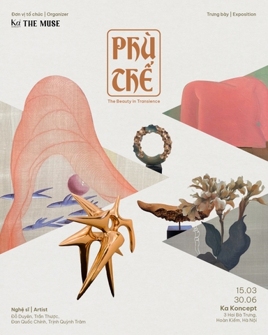 The Muse Artspace trân trọng giới thiệu trưng bày “Phù thế” tại Ka Koncept, 3 Hai Bà Trưng, Hoàn Kiếm, Hà Nội, cùng với tác phẩm của hoạ sĩ Đỗ Duyên, hoạ sĩ Trịnh Quỳnh Trâm, hoạ sĩ Đan Quốc Chính và điêu khắc gia Trần Thược.