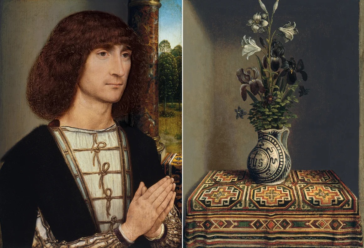 Theo triển lãm, ở mặt sau của bức chân dung này, họa sĩ Hans Memling đã vẽ một trong những bức tĩnh vật độc lập đầu tiên.