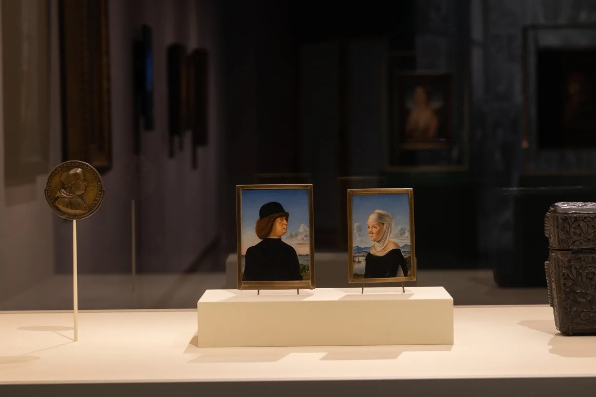 Triển lãm hiện đang trưng bày những tác phẩm quý giá của Albrecht Dürer, Titian và Hans Holbein. Một bức tranh đáng chú ý là tranh tròn của Titian với hình thần Cupid cưỡi sư tử ở mặt sau, từng là phần che cho một bức chân dung đã thất lạc của một quý tộc Venice. Một bức khác của họa sĩ Jacometto thể hiện hình ảnh một con hươu đực với vòng cổ — biểu tượng của lòng chung thủy — ở mặt sau. Bức chân dung này được cho là từng ghép đôi với một bức chân dung phụ nữ đội khăn trắng, cùng nằm trong một chiếc hộp chân dung đóng kín, thể hiện chủ đề tình yêu, lòng trung thành và nỗi buồn.