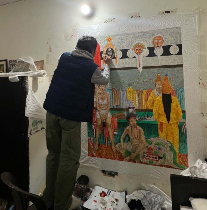 Tenzin Gyurmey Dorjee đang làm việc trong studio của mình; ảnh do nghệ sĩ cung cấp