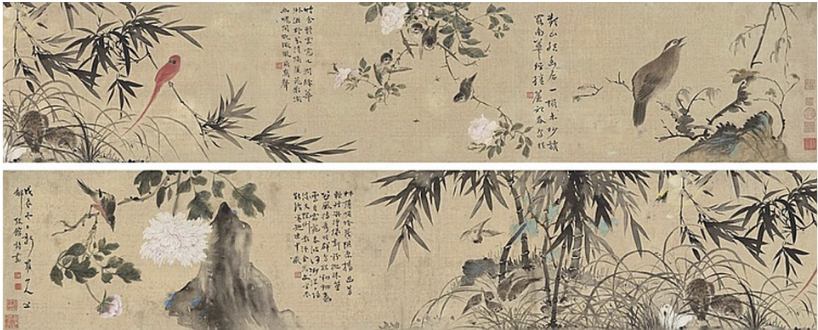 Hoa Nghiêm, Tranh cuộn chim và hoa, mực và màu trên lụa.