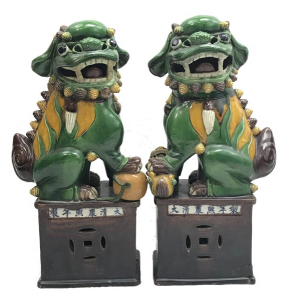 Một cặp lư hương Foo Dog bằng sứ cổ điển Trung Quốc lớn