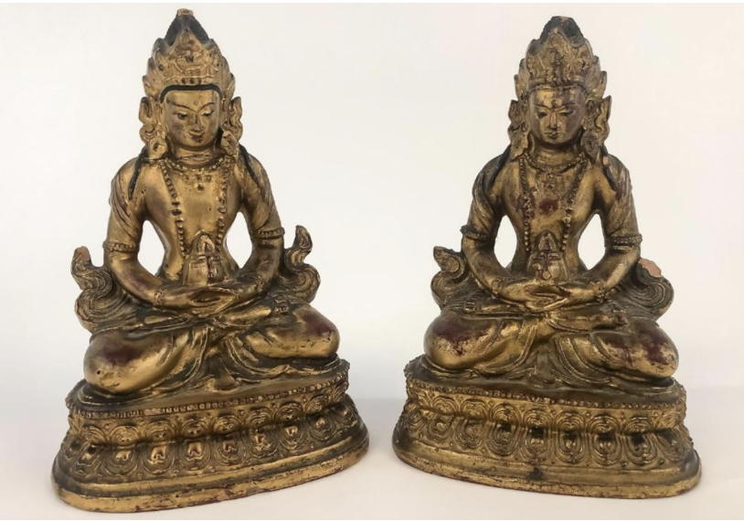 Một cặp tượng Phật ngồi bằng gỗ dát vàng của Trung Quốc.