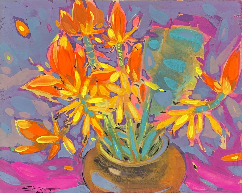 Tranh bột màu "Hoa chuối rừng" - Hoạ sỹ Phạm Hoàng Hà