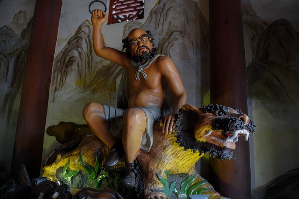 Bên trong Tam Bảo là hai tượng Hộ Pháp cao 2,5 mét, được đúc nguyên khối bằng gốm — những tác phẩm độc bản, hiếm thấy, mất trọn một năm để hoàn thành.