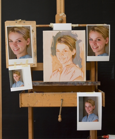Bức chân dung đang ở giai đoạn đầu và tôi phải đứng lùi ra xa để nhìn lại. Tôi chọn ra ngoài và uống một tách cà phê hay gì đó. Điều quan trọng là phải rời khỏi giá vẽ. Tôi nhìn vào bức tranh của mình càng lâu thì tôi càng không thể tự đánh giá được những gì tôi đã vẽ. Uống một ly cà phê là một mẹo nhỏ, nhưng còn nhiều hơn thế nữa chứ. Trong studio của tôi, tôi có một chiếc gương để tôi có thể nhìn thấy cả bức tranh và bức ảnh cùng một lúc. Tôi đeo kính nên tôi có thể tháo chúng ra và thấy mọi thứ mờ đi. Điều này đặc biệt tốt để có được một cái nhìn tổng thể về sự cân bằng giữa màu sắc và điểm nhấn đặc biệt.