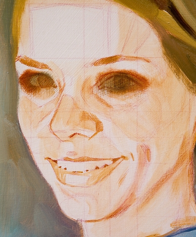 Đầu tiên, nên chuẩn bị toan và giá vẽ. Tôi đã chuyển hình ảnh lên toan bằng cách sử dụng hình đường kẻ lưới trên ảnh cũng như trên toan. Tôi sử dụng bút sáp dầu màu đỏ bởi vì màu đen của bút chì thông thường sẽ luôn hiện lên trên tất cả các lớp sơn dầu. Ở đây tôi đã sơn lên toan vẽ bằng một lớp shellac hoặc lớp sơn lót rất mỏng. Đôi khi tôi áp dụng một lớp phủ mỏng của dung dịch alkyd - một loại sơn lót nền khác. Trên lớp lót, bằng acrylic, tôi vẽ một lớp sơn dưới bằng màu raw sienna (một màu nâu lạnh). Nếu tôi bị mất định hướng ban đầu, tôi luôn có thể gạt bỏ một lớp dầu bằng bay để xem bản vẽ ban đầu và lớp sơn nền.