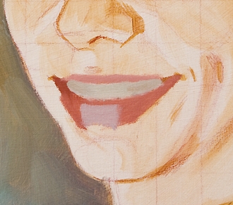 Có một rủi ro nhất định của việc làm mềm quá nhiều khi vẽ một bức chân dung trong giai đoạn này. Tôi vẽ những nét chặn giữa răng trên và môi dưới. Tôi không làm từng chiếc răng cụ thể, nhưng đủ đảm bảo rằng đường cong gợi ý người xem về răng.