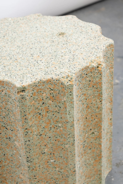 Rubber Rocks bao gồm các thiết kế nội thất như ghế đôn, ghế bành, bàn cà phê, băng ghế, bàn console và chậu cây – tất cả đều được đúc và tạo hình thủ công từ tẩy vụn, trộn với bụi đá cẩm thạch và sắc tố mô phỏng những đường vân tự nhiên của đá granite. “Chúng tôi luôn yêu thích tẩy – một vật thể chỉ thực sự hữu ích khi nó dần biến mất,” Deddens nói. “Điều đó gợi lên mối quan hệ mong manh giữa sự tồn tại và sự hao mòn.”