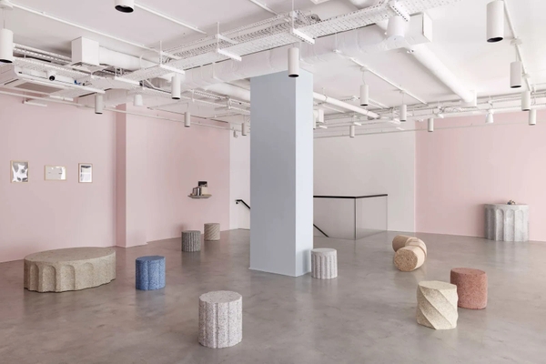 Thoạt nhìn, Gallery Fumi ở London trông như vừa được sắp đặt bằng những khối đá granite chạm khắc: ghế đôn, bàn console và băng ghế mang dáng dấp của tàn tích cổ đại – thô mộc, đơn sắc, đầy ấn tượng. Nhưng lại gần, ảo ảnh vỡ tan: những vật thể tưởng chừng nặng nề, trường tồn ấy thực ra mềm mại và co giãn khi chạm vào.