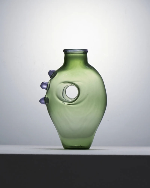 Một ví dụ là chiếc dĩa Eye Candy Saucer. Ban đầu dự định làm phẳng, chỉ hơi xoắn nhẹ, nhưng dưới nhiệt độ cao, tấm thủy tinh bất ngờ phồng lên như bong bóng. “Tôi yêu hình dạng đó. Nó không hoàn hảo, nhưng đầy sức sống.”