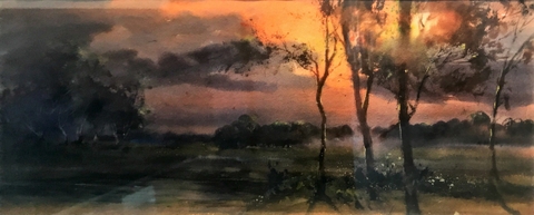 (Tranh màu nước "Hoàng hôn"- Họa sĩ Thụy Dương)