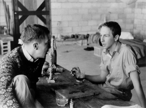 ( Rauschenberg and Jasper Johns at Louis and Fance Stevenson’s home “somewhere up the Hudson”, 1954 )