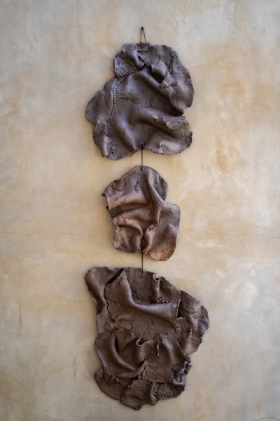 Di sản văn hóa cá nhân hiện diện rõ nét trong cách Samuels đưa vải, da thuộc và hạt đất tự nặn vào tác phẩm. Cô thường ấn vải lên thân đất, để lại vết gấp và chất liệu gợi liên tưởng tới sự chuyển động – như một ký ức về nghề thiết kế thời trang trước đây, hay như một biểu hiện của cơ thể và chuyển hoá. Trong loạt Wave Medallion, dây da được thêm vào không chỉ để treo tác phẩm, mà còn để mở rộng khả năng trình bày – trên tường hay lơ lửng giữa không gian, tự do như chính phương pháp sáng tác của cô.