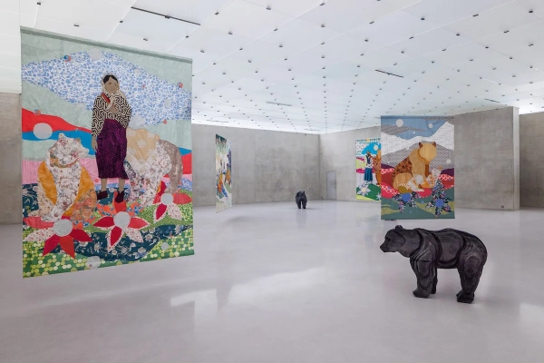Không gian trưng bày “Małgorzata Mirga-Tas: Tełe Ćerhenia Jekh Jag” (Under the Starry Heavens a Fire Burns), 2025, Kunsthaus Bregenz. Ảnh: Markus Tretter.