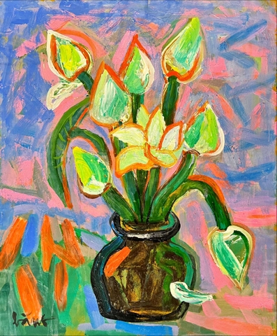15. Tĩnh vật hoa sen – Sơn dầu trên giấy, 60x50 cm
