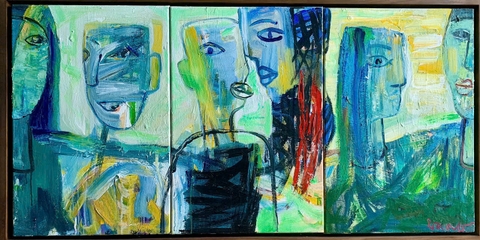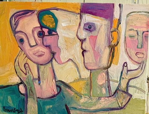 Các khuôn mặt xếp chồng, hòa trộn và đối thoại với nhau. Đôi môi mở ra, bàn tay đan cài – những yếu tố biểu cảm được đẩy lên cao độ. Phông nền hỗn tạp ánh sáng, tạo nên không gian thị giác chuyển động như gió. Tác phẩm gợi cảm xúc lãng mạn, chân thật mà không kém phần dữ dội trong biểu hiện cảm xúc cá nhân – nét tiêu biểu trong hội họa biểu hiện hiện đại.