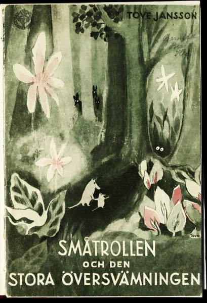 Ấn bản tiếng Thụy Điển đầu tiên của truyện Moomin đầu tiên, The Moomins and the Great Flood (1945). © Moomin Characters.