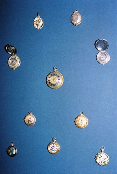 Và chúng ta cũng có thể đắm chìm trong những thú vui kỳ lạ như bộ sưu tập đồng hồ của bảo tàng. Được tráng men, mạ vàng và trang trí vô cùng tinh xảo, đặt dưới ánh sáng rực rỡ trong một không gian nhỏ—có thể là phòng đựng đồ của quản gia trước đây?—những chiếc đồng hồ này, với vẻ ngoài thu hút ánh nhìn, tạo nên một bàn thờ tôn vinh nghệ thuật chế tác thời gian.