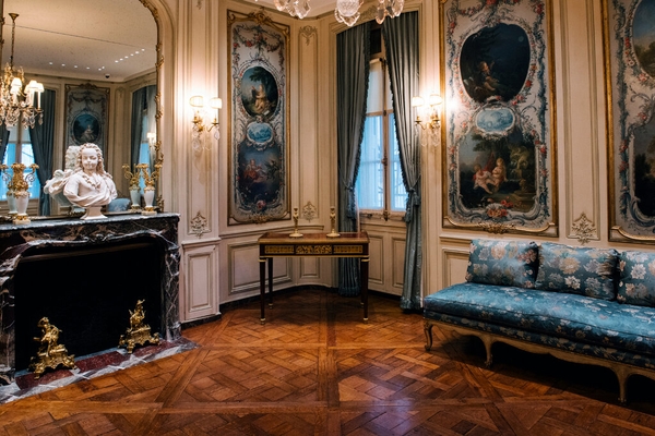 Trái ngược với những thay đổi trên tầng hai, Phòng Boucher, được đặt tên theo loạt tranh mang tính biểu tượng của họa sĩ cung đình Pháp thế kỷ 18 François Boucher (1703-1770), vẫn giữ nguyên như khi Adelaide, mẹ của Helen, từng biết đến nó. Đây từng là phòng tiếp khách riêng của Adelaide. Sau khi bà qua đời, căn phòng đã bị tháo dỡ và chuyển xuống tầng dưới để trưng bày công khai, nhưng nay đã được khôi phục về vị trí cũ, đầy đủ với những chi tiết mà bà chắc hẳn đã tận hưởng mỗi ngày: đồ sứ Sèvres, nội thất Rococo, và sàn gỗ thế kỷ 18 mềm mại như tấm thảm tập yoga của Lululemon.