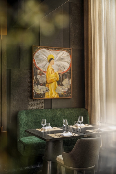 Các nhà hàng trong khách sạn, đặc biệt là Soi Restaurant được tích hợp trưng bày tranh với cách tiếp cận gần gũi: tranh treo xen kẽ với cấu trúc nội thất, ánh sáng được điều chỉnh để tôn chất liệu lụa và màu sắc sơn dầu. Những bức tranh trở thành một phần của trải nghiệm ẩm thực.
