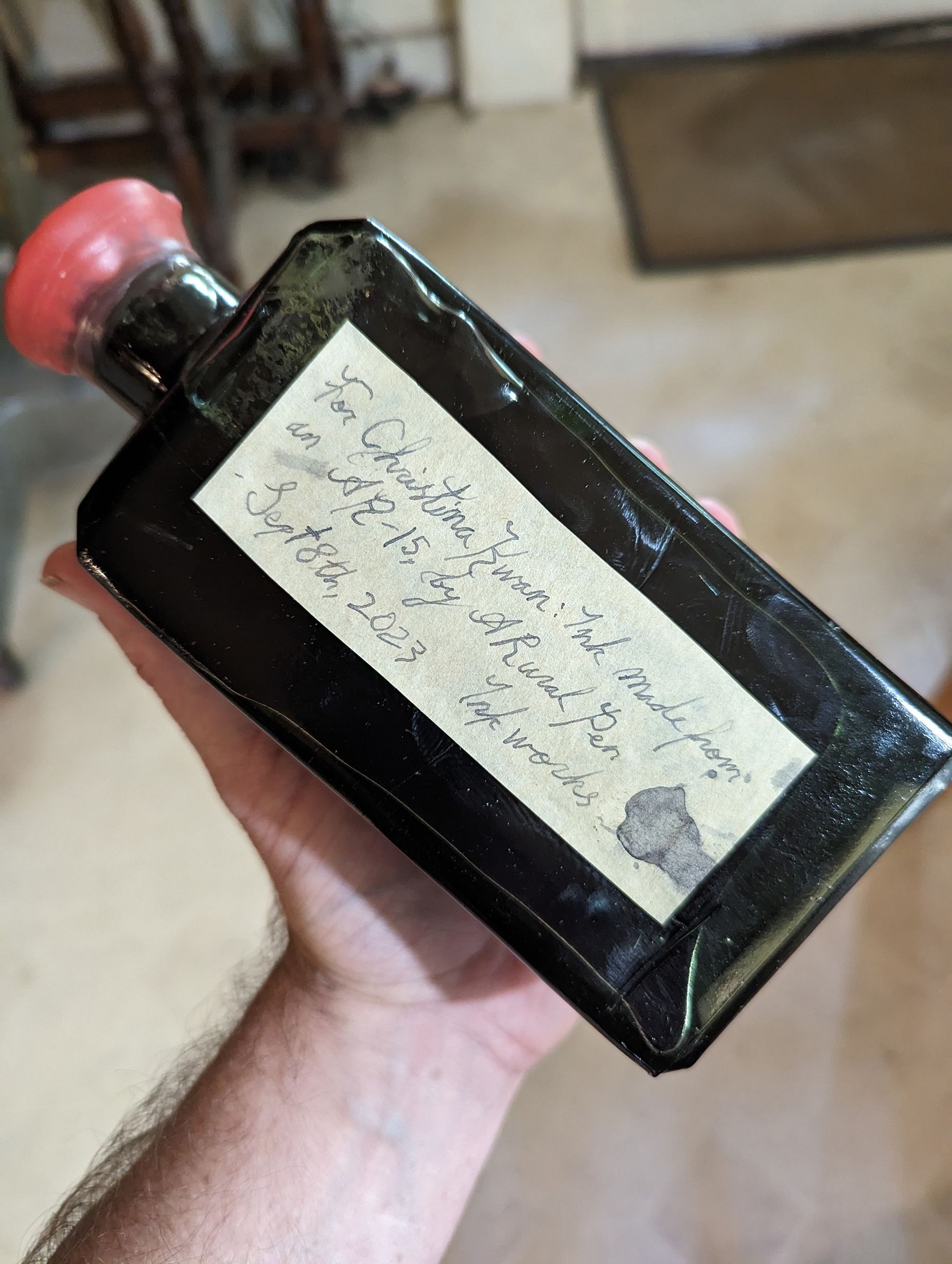 Kết hợp với axit tannic chiết xuất từ cây sumac, mực của Little chuyển sang màu đậm hơn khi tiếp xúc với oxy. Đó là một quá trình hóa học – cũng là một quá trình mang tính biểu tượng và thiêng liêng.
