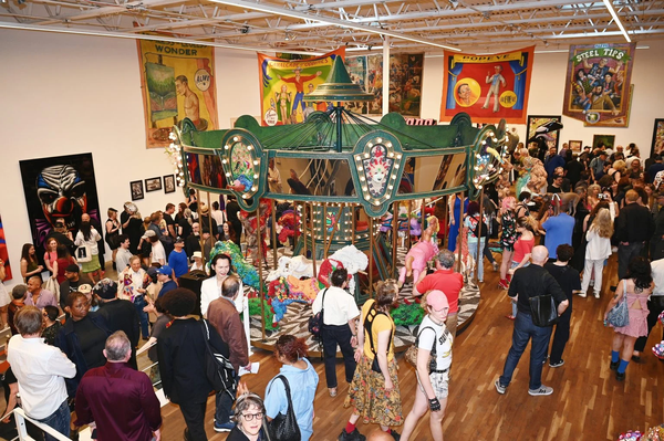 Đông đảo khán giả tại buổi khai mạc Carnival, do Joe Coleman giám tuyển, tại Jeffrey Deitch. Ảnh: Christos Katsiaouni, do Jeffrey Deitch, New York cung cấp.