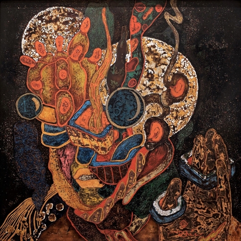 Tranh sơn mài "Bộn bề"- Họa sỹ Nguyễn Minh Đức