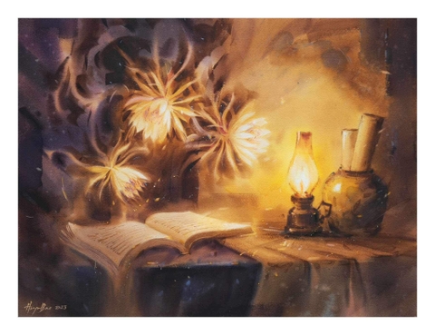 Tranh màu nước "Hương Quỳnh"- Họa sỹ Bảo Huỳnh