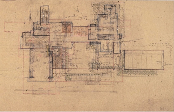 Bản vẽ thiết kế Bass House ở Fort Worth, do Paul Rudolph thiết kế.