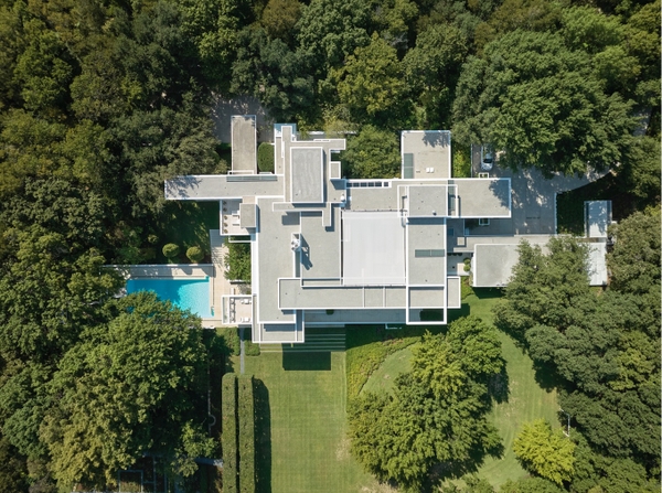 Toàn cảnh dinh thự Bass ở Fort Worth nhìn từ trên cao, do Paul Rudolph thiết kế. Ảnh: Steve Freihon