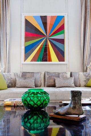 Trong phòng trang điểm của ngôi nhà ở East Hampton, tôi treo bức tranh sơn dầu trừu tượng đầy sức sống của Roy Lichtenstein có tựa đề Mặt trời mọc. Bức tranh trừu tượng mô tả khung cảnh ấm áp của mặt trời đang mọc thông qua sự kết hợp giữa các đường kẻ đậm và các mảng màu cùng với các nét chấm đặc trưng của họa sĩ.