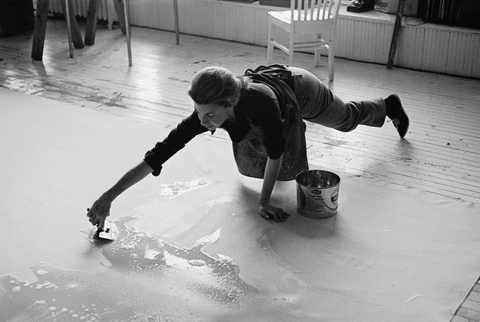 ( Helen Frankenthaler đang làm việc trong xưởng vẽ của mình, năm 1969. )