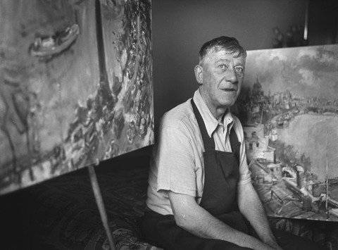 ( Oskar Kokoschka with his paintings, 1954 )