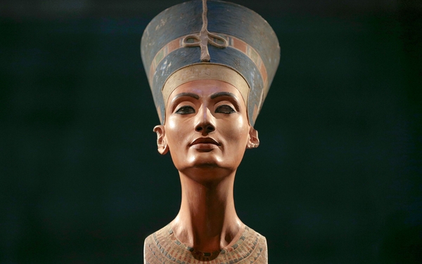 Bức chân dung này đã trở thành biểu tượng của vẻ đẹp nữ giới kể từ khi được khai quật vào năm 1912, trong tàn tích của Amarna - thủ đô do vị Pharaoh gây tranh cãi nhất lịch sử Ai Cập cổ đại, Akhenaten, xây dựng. Cuộc đời của hoàng hậu Nefertiti vẫn là một bí ẩn: Có giả thuyết cho rằng bà từng cai trị với tư cách Pharaoh sau khi Akhenaten qua đời - hoặc có khả năng cao hơn, là nhiếp chính cùng với vị vua trẻ Tutankhamun. Một số nhà Ai Cập học còn tin rằng bà chính là mẹ ruột của Tutankhamun. Bức tượng bán thân bằng đá vôi phủ thạch cao này được cho là tác phẩm của Thutmose, nhà điêu khắc hoàng gia dưới triều đại Akhenaten.