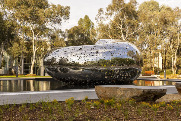 Một dải Möbius lấp lánh, giống như một phi thuyền, được treo lơ lửng trên lối vào đường Hunter Street, dễ dàng nhìn thấy từ đường phố bên ngoài. Được chế tác từ thép không gỉ đánh bóng kỹ lưỡng, hình dạng vô tận này phản chiếu sự chuyển động không ngừng của con người và thành phố trên bề mặt của nó.