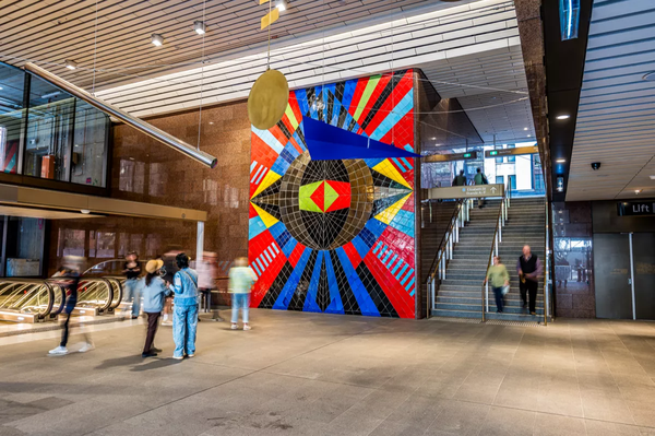 Mikala Dwyer, tác phẩm nghệ thuật “Continuum”, 2024, Ga Martin Place, lối vào đường Hunter Street, Sydney. Ảnh: UAP.