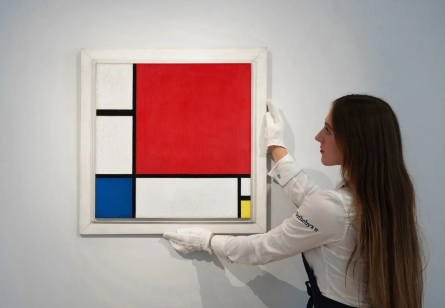 Piet Mondrian, Composition No. II, 1930. Bức tranh này là một trong ba bức duy nhất có hình vuông màu đỏ chủ đạo ở góc trên bên phải. Ảnh do Sotheby's cung cấp.