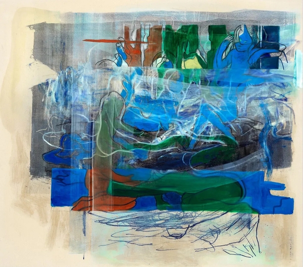 Nghệ sĩ người Hungary Rita Ackermann khai thác chủ đề “song trùng” qua tranh và tác phẩm trên giấy khổ lớn. Chịu ảnh hưởng từ điện ảnh và triết học Pháp, loạt tác phẩm mới kết hợp nhiều chất liệu, tạo nên sự năng động trong thị giác.
